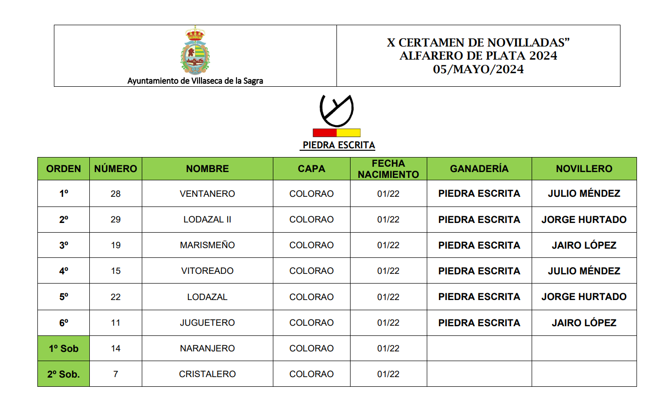 Seis novillos de Piedra Escrita han sido sorteados y enchiquerados para la final del Alfarero de Plata 2024 en Villaseca de la Sagra.