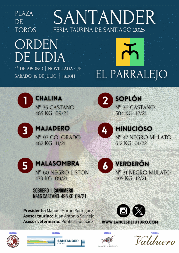 La Feria de Santiago de Santander arranca este sábado 20 de julio con una novillada con picadores que ha despertado gran interés entre los aficionados. Ya han sido sorteados y enchiquerados los ejemplares de la ganadería de El Parralejo, conocidos por su clase y buena presentación.