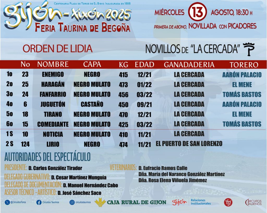Los novillos de La Cercada que abrirán este miércoles la Feria de Begoña de Gijón ya han sido sorteados y enchiquerados en los corrales de la plaza de toros de El Bibio.