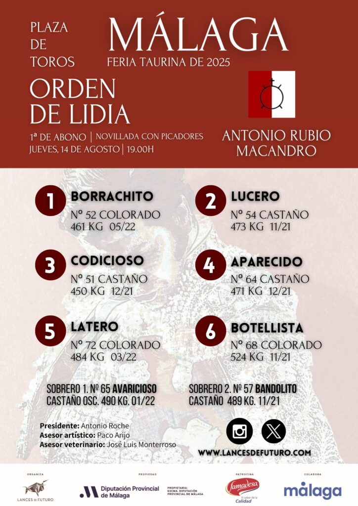 La feria taurina de Málaga arranca esta tarde con una novillada de Antonio Rubio ‘Macandro’ ya sorteada y lista en los chiqueros.