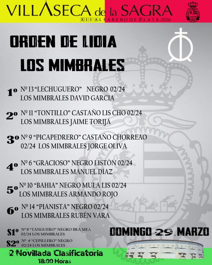 Ya han sido sorteados los erales de la ganadería Los Mimbreles que se lidiarán esta tarde en Villaseca de la Sagra, con motivo de la segunda novillada clasificatoria del Alfarero de Plata.