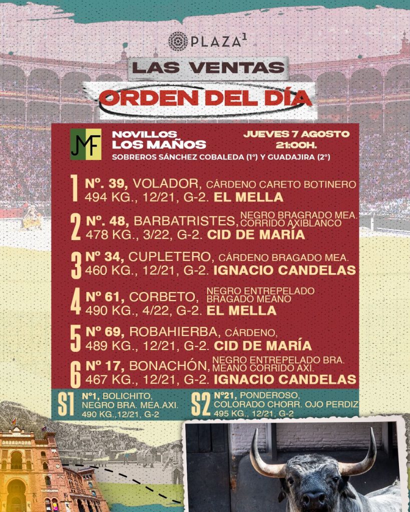 Sorteados y enchiquerados seis novillos del hierro de Los Maños para el primer festejo del mes de agosto en la Plaza de Toros de Las Ventas. Esta noche, a las 21h., harán el paseíllo El Mella, que se presenta en Madrid, Cid de María e Ignacio Candelas, que también hace su primer paseíllo en esta plaza.