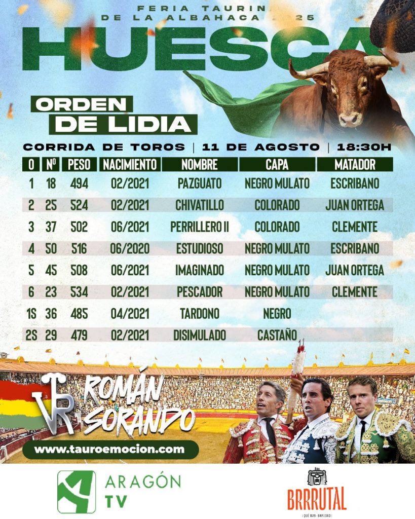 Sorteados los seis de Román Sorando para esta tarde en Huesca