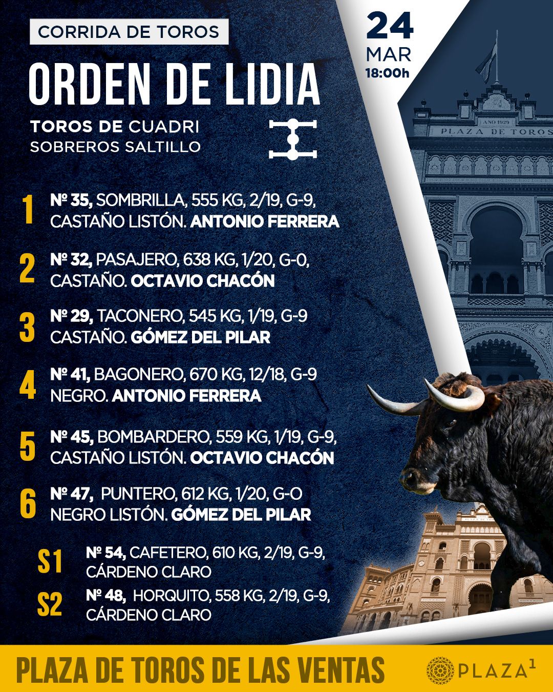 A las 18:00h. harán el paseíllo Antonio Ferrera, Octavio Chacón y Gómez del Pilar.