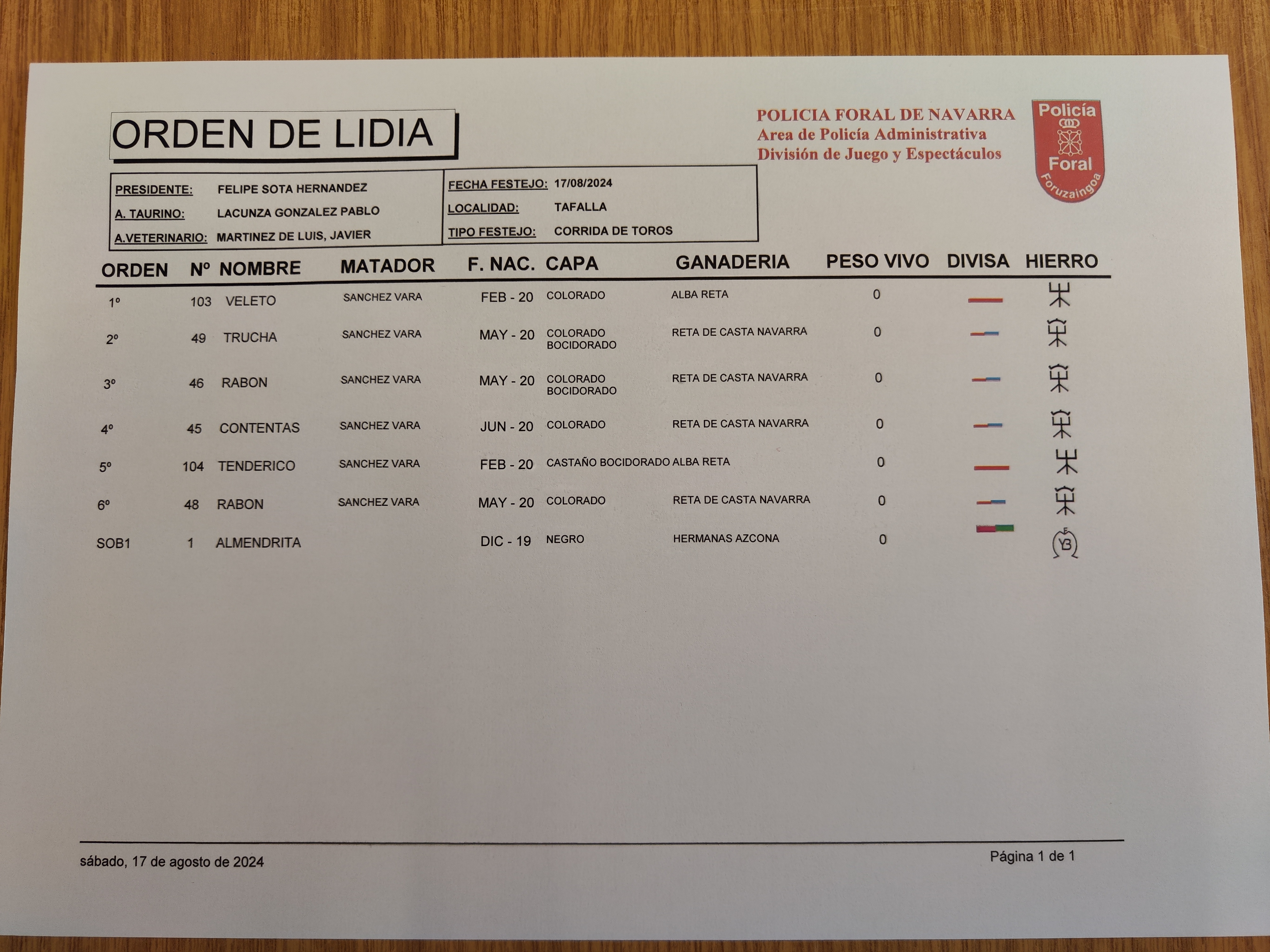 Seis toros de Reta han sido sorteados y enchiquerados para esta tarde en la plaza de toros de Tafalla (Navarra).