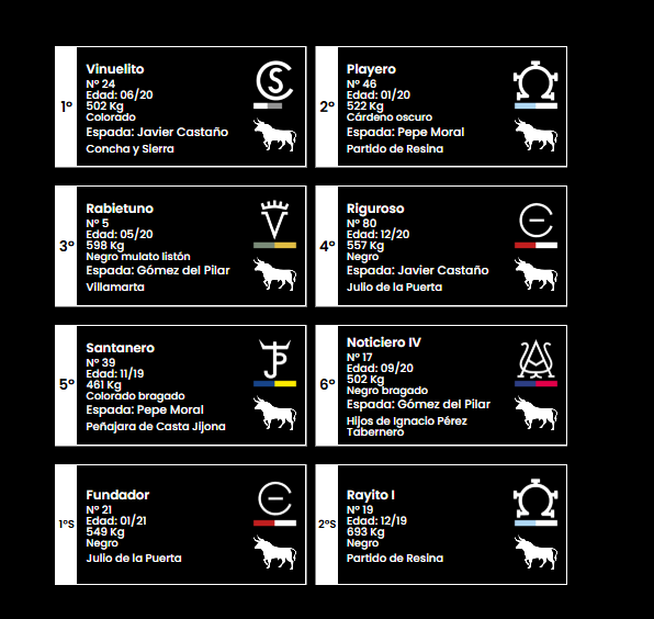 El orden de lidia ha quedado conformado de la siguiente manera: