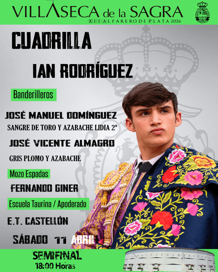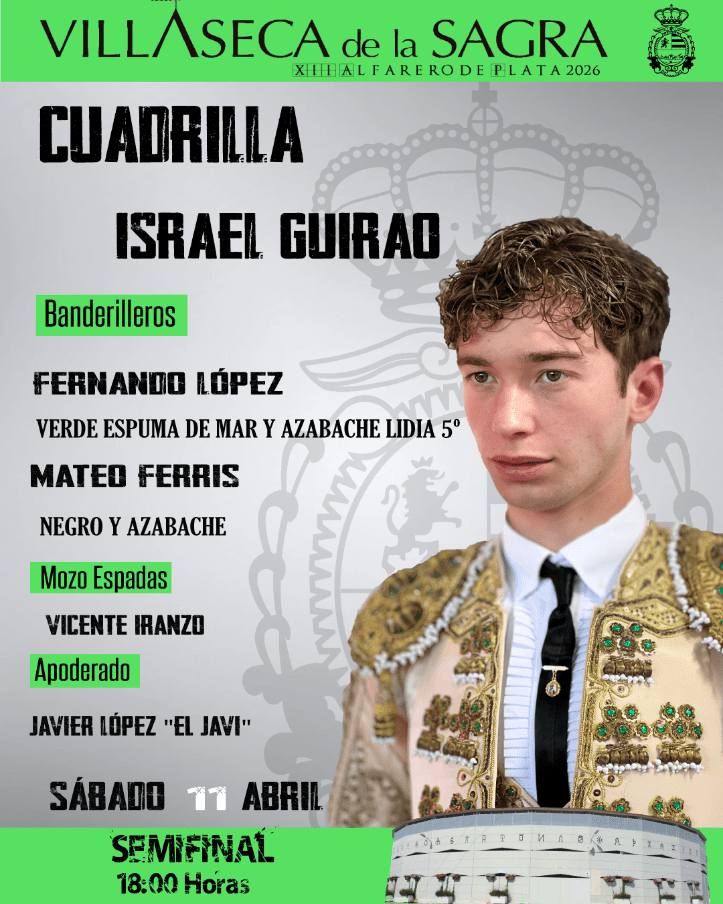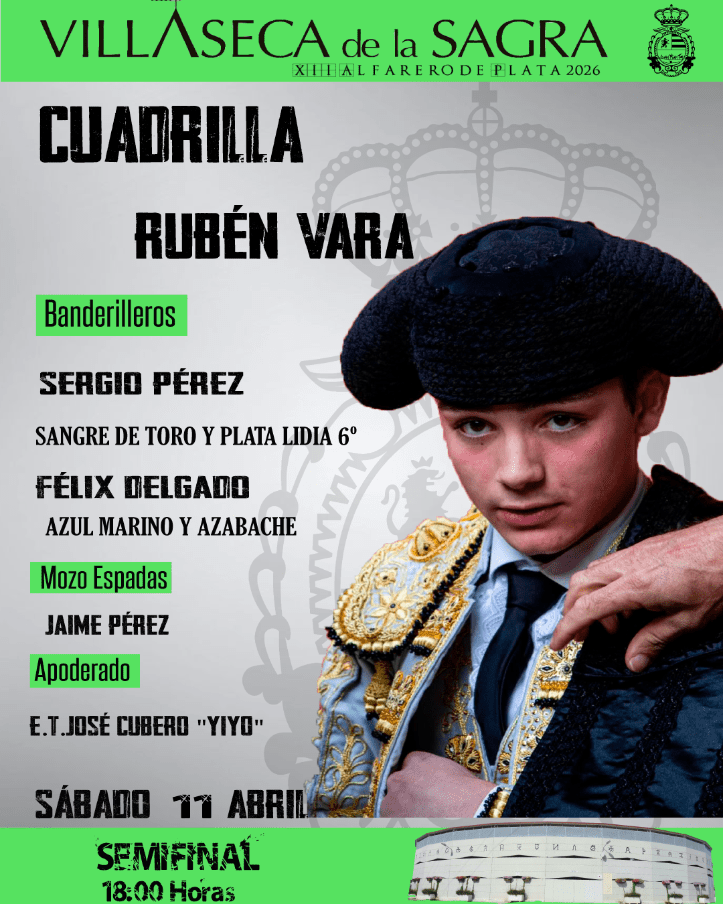 En el ruedo estarán Jaime Padilla, Ian Rodríguez, Noel García, Jaime Torija, Israel Guirao y Rubén Vara, que afrontan una tarde determinante en sus aspiraciones dentro del certamen.