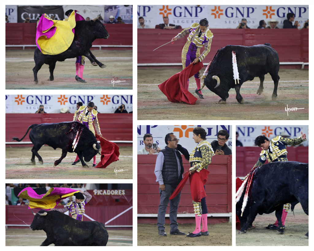 El acalitense Leo Valadez, en su primero, bravo y transmitiendo, salió el torero con actitud y, cerrado en tablas, de rodillas, le aplicó tres largas cambiadas y, de pie, dio verónicas y mandiles, además, de quitar vistosamente por chicuelinas. Buena vara del picador Eduardo Noyola. Con la pañosa, Leo inició al hilo de las tablas, de hinojos, dando pases por alto y, de pie, realizar un trasteo aprovechando las buenas condiciones de su antagonista para ligar tandas por los dos pitones pleno de entrega y variedad. Hizo el toreo en redondo y molinetes, A pesar del arrimón que se dio, el astado vino a menos y todo lo malogró con la espada para ser silenciada su labor.