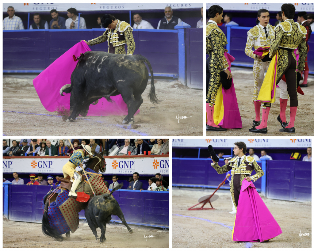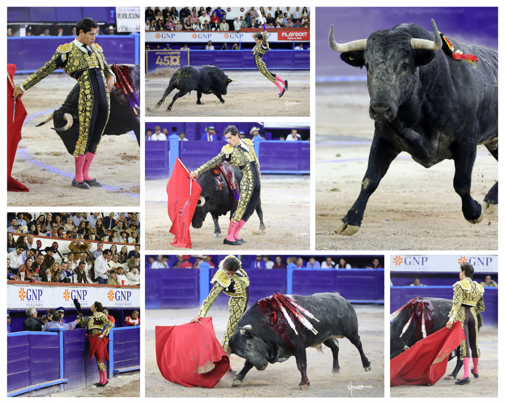 A su primero, deslucido y rajado, Luis David Adame, de rodillas, en tablas, fue desarmado en una larga cambiada. De pie, lo bregó y le endilgó artísticas verónicas y ejecutó el vistoso quite o galleo del Bu. Cubrió espectacular el segundo tercio entre aplausos. Con la pañosa, se dio a ejecutar un trasteo comenzando en el tercio, a corta distancia, con un cambiado por la espalda y una serie de sentidos pases de pecho. Siguió por derechazos largos y templados, aunque, el toro salía huyendo. Le insistió gallardamente por el mismo lado. Al natural le sacó pases de mérito. Más aplicación diestra de evidente talento en otras dos series importantes. Otra empeñosa dosis natural y lucidos lances para cerrar la faena. Terminó de pinchazo y media estocada para hacerse aplaudir.