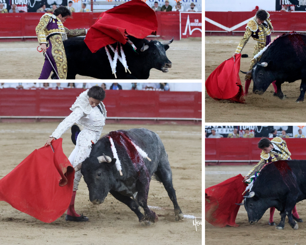 En su primero, de poca fuerza, el limeño Andrés Roca Rey se dejó ver empeñoso y variado en el saludo capotero. Saliendo del caballo, el astado perdió las manos y ante la inconformidad del público, la autoridad ordenó que regresara a los corrales, por lo que, en su lugar, salió la primera reserva, llamado “Costurero”, de la misma dehesa titular, que tuvo nobleza y, al que Roca Rey, lanceó de forma voluntariosa. Buena vara del piquero Alfredo Ruiz. Luego de brindarle al empresario y ganadero Pablo Moreno Valenzuela, Andrés, con la sarga, poco a poco lo fue metiendo en el engaño, yendo de menos a más hasta bajarle la mano y corrérsela con gusto, sobresaliendo dos brillantes tandas diestras que le fueron jaleadas y una más por naturales. Ha sido una faena plena de entrega y hondura. Cerró por ceñidas manoletinas y mató de media estocada para que el juez de plaza, de manera benévola, le otorgara las orejas bajo algunas protestas. Al toro se le aplaudió en el arrastre.